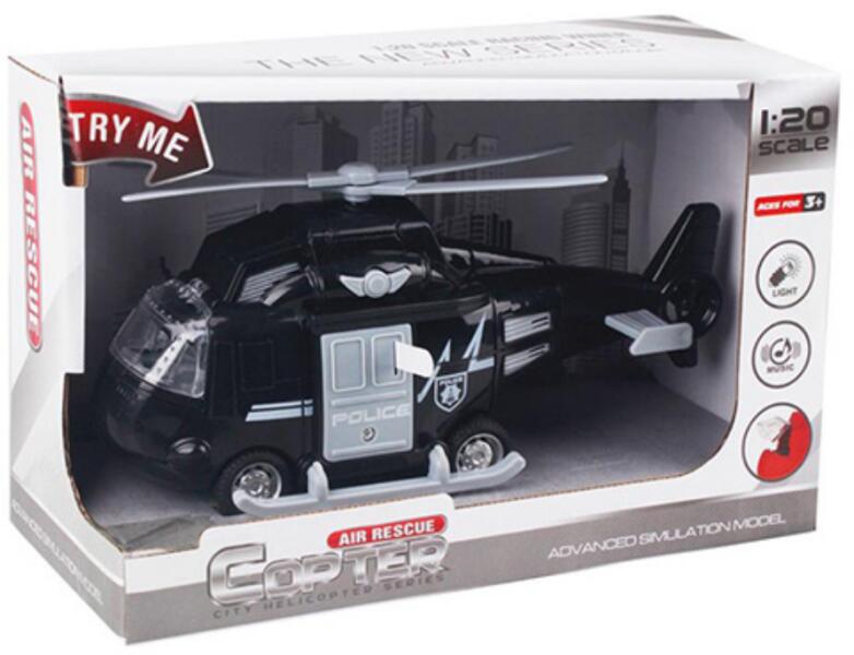 Lendkerekes rendőrségi helikopter fénnyel és hanggal 1/20 Hivatalos magyarországi forgalmazótól. Leírás: Ez a robusztus kialakítású helikopter a gyerekek egyik kedvenc játéka lehet, hiszen a mókás kialakítás egy lendkerekes meghajtást rejt magában, ami gondoskodik arról, hogy a kezdő lendület után a helikopter tovább tudjon gurulni. A géptestben kialakított elektronikán
