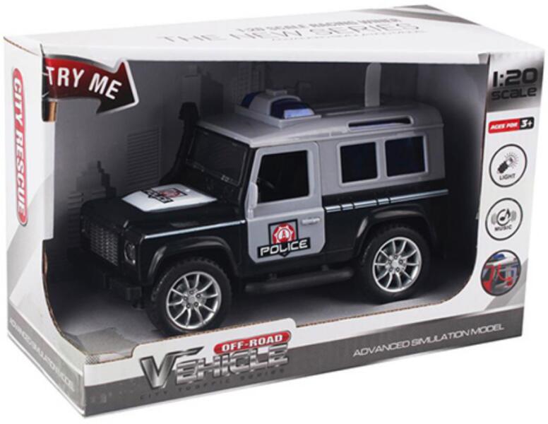 Lendkerekes rendőrségi terepjáró autó fény és hang effektekkel 1/20-as méretben Hivatalos magyarországi forgalmazótól. Leírás: Szerezz be gyermeked számára egy izgalmas játékot ígérő rendőrségi terepjáró autót, amely lendkerekes meghajtással rendelkezik és a még magasabb játékélmény érdekében fény és hangeffektekkel is el lett látva. Az autó 1:20-as méretará