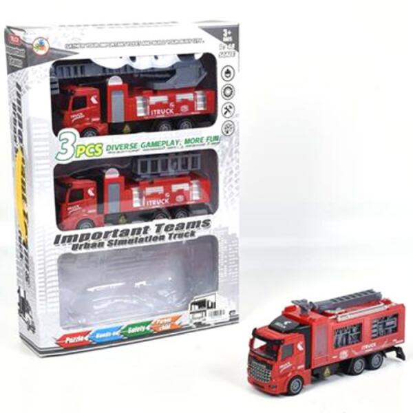 Hátrahúzós tűzoltósági teherautó szett 3db-os Hivatalos magyarországi forgalmazótól. Leírás: A tűzoltóság kötelékében természetesen nem csak a jól ismert létrás autók teljesítenek szolgálatot, hanem számtalan feladatra és vészhelyzetre specializálódott teherautó is a flotta része szokott lenni, és ebben a csomagban három darab vagány, piros színű tűzoltókocsi