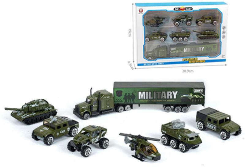 Katonai jármű szett kamionnal 7db-os készlet Hivatalos magyarországi forgalmazótól. Leírás: Bővítsd ki gyermeked játékgyűjteményét ezzel az összesen 7db különböző katonai járművet tartalmazó készlettel amelyek kiválóan felhasználhatók akár egy játékváros keretein belül is. A szettben egy nagy méretű kamion is megtalálható amely a rakományt és harcászati eszk