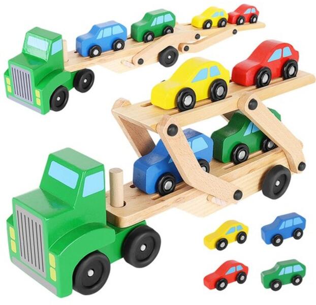 A fajátékok tartósak és ellenállnak a sérüléseknek . Kifogástalan állapotban generációkon át szolgálhatnak, ami nem mondható el műanyag társairól. A játék fiúknak és lányoknak egyaránt megfelelő lesz FA ÖSSZEHAJTHATÓ KAMION 4 db AUTÓVAL FA KÉTSZINTES KAMION + AUTÓK - a készlet egy teherautóból, egy rákapcsolt, mozgatható pótkocsiból és 4 személygépkocsiból