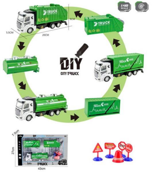 City Truck Átalakítható szemétszállító teherautó jelzőtáblákkal 1/48 Hivatalos magyarországi forgalmazótól. Leírás: Gyermekedet egy egyedi szettel lepheted meg, ami elsőre elnyeri majd tetszését. A szettben ugyanis egy hulladékszállító autó található, mely zöld színt kapott. A teherautó részletes kialakítást kapott, és konténeres, tartályos és szemétszállító