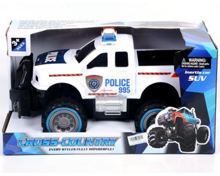 Cross Country rendőrségi pick-up járgány Hivatalos magyarországi forgalmazótól. Leírás: A legtöbb kis srác nagyon szereti a rendőrkocsikat, így ez a jó harminc centiméteres pick-up járgány egészen biztos, hogy azonnal elnyeri a tetszésüket. A kocsi egy erősen módosított pick-up, ami a rendőrség klasszikus színével, és a hatalmas kerekeivel igazán impozáns megjelenéss