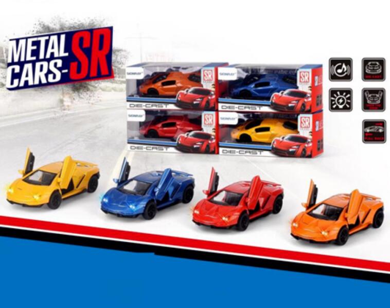 Jellemzők: - Luxus sportautó modell - Fénnyel és hanggal - Hátrahúzós funkcióval - 4 színváltozatban (piros, narancssárga, kék, citromsárga) - Anyaga: fém/műanyag - Méretaránya: 1/43 A feltüntetett ár 1db terméket jelent, melyet bármely változatban szállíthatunk. Javasolt életkor: 3 - 8 éves korig Kiknek ajánlott: Fiúknak Jellemzők: - Luxus sportautó modell - Fénnyel
