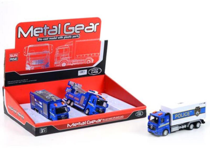 Metal Gear rendőrségi teherautó többféle változatban 1/43 Hivatalos magyarországi forgalmazótól. Leírás: A rendőrségi járművek minden gyermek figyelmét felkeltik, ami nem is meglepő, hiszen élénk villogójukkal és hangjukkal nagy feltűnést keltenek. Most rendőrségi teherautókat hoztunk el gyermekednek, aki kiválaszthatja melyik tetszik neki a legjobban, de akár össze is