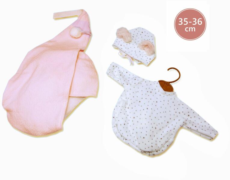 Llorens 2 részes öltöny akasztós zsákkal NEW BORN Llorens 35–36 cm méretű babákhoz. Ez a ruhadarab gyönyörűen díszíti a babádat. -A baba nem képezi a csomagolás részét.