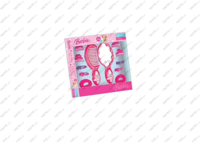 Barbie mini hajformázó szett (tükör+fésű+gumik+csatok) 18x20x2cm
