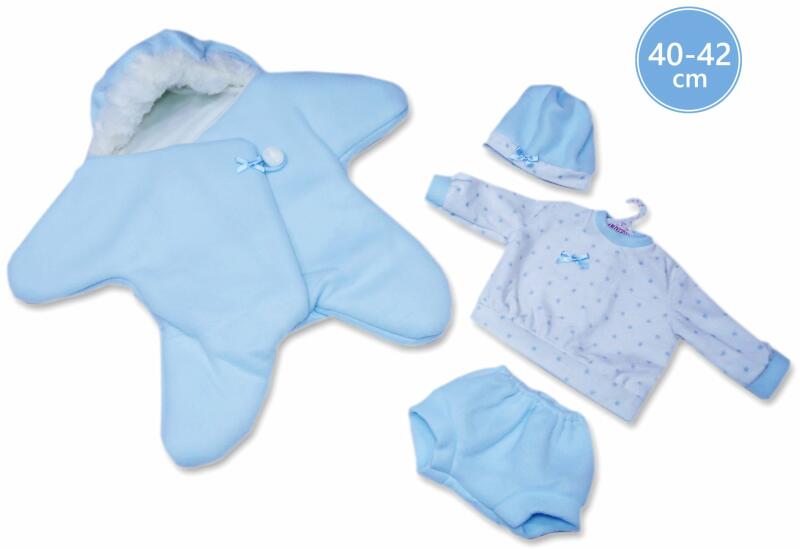 Llorens 3 részes outfit kétoldalas, csillag alakú gyapjú overállal, 40–42 cm-es NEW BORN Llorens babának. Ez a ruhadarab szépen feldíszti babádat. -A baba nem képezi a csomagolás részét.