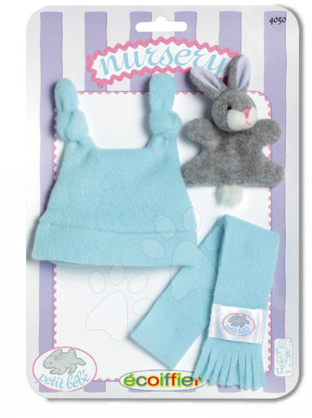Écoiffier játékbaba ruhácskák Clip Strip Nursery egy készlet, amely bájos játékbaba zoknit, előkét és rózsaszín nadrágot tartalmaz. A másik játékbaba ruha szett egy kék sapkából, sálból és bájos nyusziból áll. A kislányok úgy öltöztethetik babájukat, ahogy nekik tetszik. A játékbaba ruhák kellemes anyagból készültek. A ruhák minden 32 cm nagyságú babának a