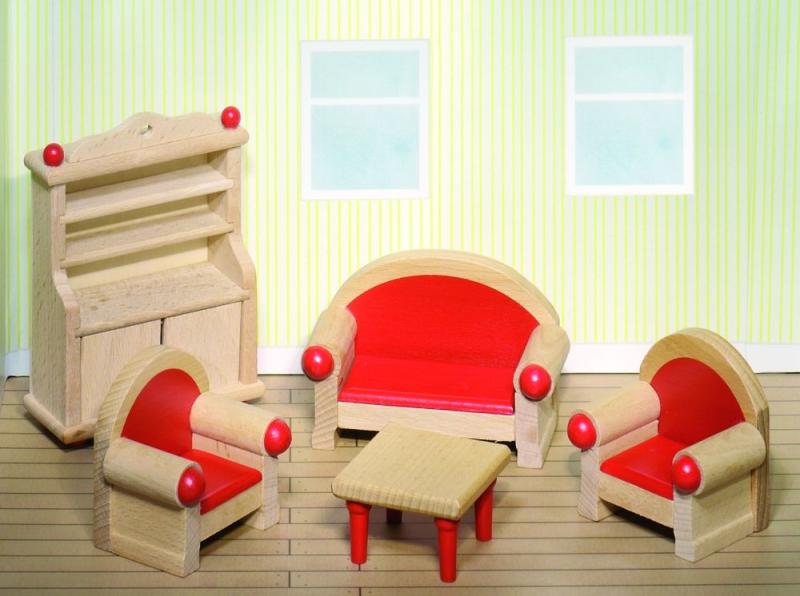 Goki fa babaház bútor, nappali 5 részes. A német Goki fajáték márka egyaránt kedvelt mind a gyerekek, mind a gyerekekkel foglalkozó óvodák és egyéb intézmények körében, a Goki játékok kidolgozottsága, színvilága és minősége saját véleményünk szerint is kiemelkedik a gyerekjátékok és fajátékok között. Anyaga: fa Méret: 14 cm (szekrény) Címkék: fajáték, baba