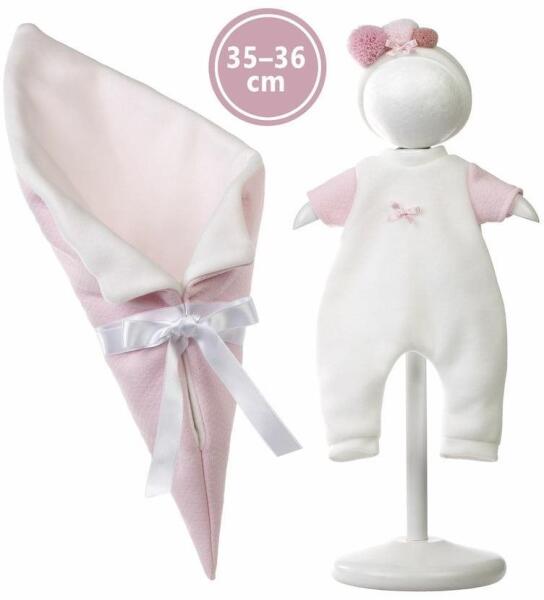 2 részes készlet. Ruhák dekoratív kúp alakú pelenkával a NEW BORN Llorens baba babához, mérete 35-36 cm. Spanyolországban kézzel készített, műanyag pánttal ellátott műanyag zacskóba csomagolva. Ajánlott életkor 3 éves kortól.