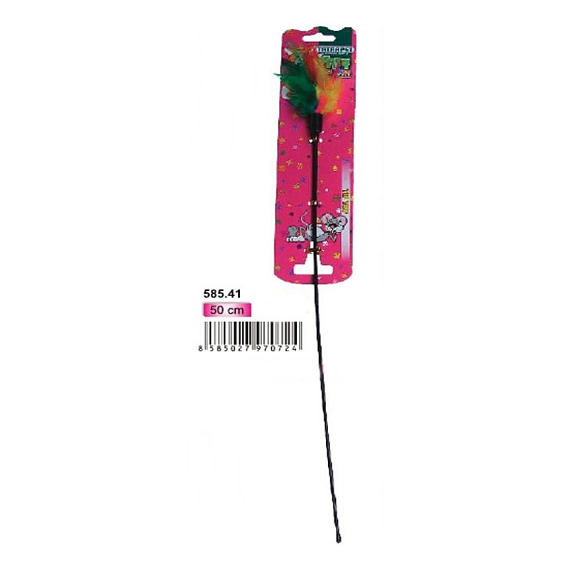 Műanyag pálcához gumikötéllel erősített pávatoll macskáknak. Remekül eljátszhatsz vele kedvenceddel.