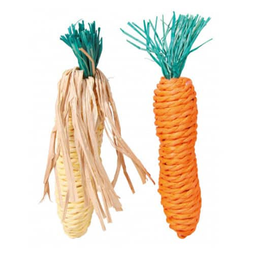TRIXIE RÁGCSÁLÓ JÁTÉK ZÖLDSÉGEK SZALMÁBÓL Szalma játék rágcsálóknak, játékos fogkoptatáshoz. Természetes anyagból készült rágcsáló játék, ami nem csak szórakoztató, hanem hasznos is. A csomag tartalma 2db 15cm-es szalma játék/ szalma zölddel. (kukorica, sárgarépa) Szalma játék rágcsálóknak, játékos fogkoptatáshoz. Természetes anyagból készült rágcsál
