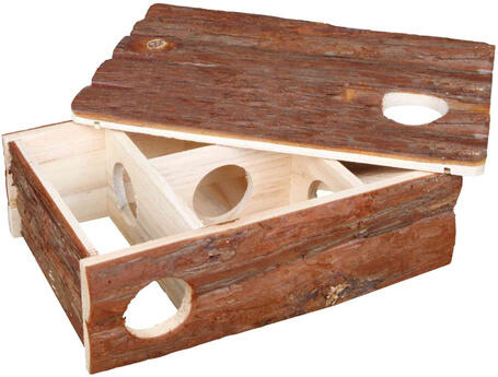 Természetes, fából készült dobozka formájú házikó belsejében labirintussal. Hörcsögöknek, egereknek, és más kisrágcsálók részére ajánlott. A labirintus szinte azonnal minden kisrágcsáló kedvenc bújóhelyévé válik.
