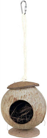 Kókuszdióhéjból készített odú, kuckó kisebb rágcsálók számára. A belsejében kókuszrost fészekanyaggal. Nem gond, ha kis kedvencünk megrágcsálja. Ideális választás hörcsögöknek, egereknek.