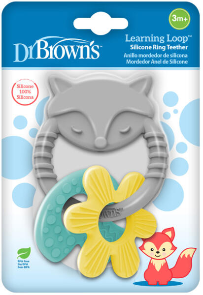 DR. BROWNS - Fox Loop Teether (TE108INTL), a Fox Learning Loop Teether textúrája és színei segítik a gyermek fejlődését, és egyúttal megnyugtatják a fájó fogínyt.