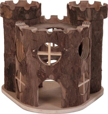 Bástyás várat formázó faodú hörcsögök, egerek és egyéb kisrágcsálók számára. Fenyőfáből készül. Semmilyen mesterséges anyagot nem tartalmaz. Dekoratív és praktikus is egyben.