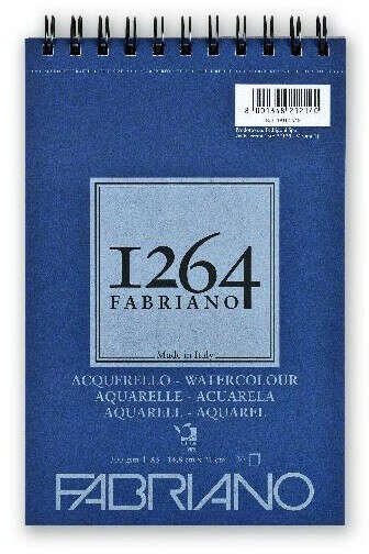 Fabriano 1264 Watercolour 300g A5 20lapos spirálkötött akvarell tömbSpirálkötésű akvarell papírtömb, mikroperforált fehér lapokkal. A Fabriano 1264 akvarell papír kivételes minőségű hidegen sajtolt felülettel rendelkezik: nedvszívó, valamint karcálló. Nemcsak a színek élénkségét fokozza, hanem nagyon ellenálló is, lehetővé tesz mindenféle akvarell technikát. Ideál