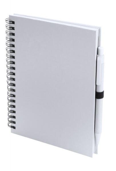 Karton borítású, 70 sima lapos spirál jegyzetfüzet, megegyező színű újrahasznosított papír golyóstollal. Kék tollbetéttel szállítjuk.