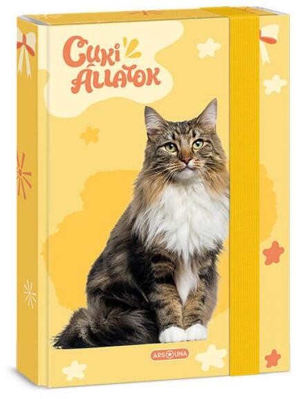 A5-ös méretű füzetbox cicás mintával. Füzetek, iratok tárolására alkalmas. Kemény, tartós kartonból készült. Gumipántja 7 mm vastag. Méret: 22x, 3,5x16 cm. Minőségi Ars Una termék. Fedezd fel az Ars Una Cuki állatos kollekcióját >>