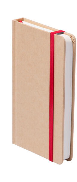 Újrahasznosított karton borítású jegyzetfüzet 100 sima lappal, megegyező színű könyvjelzővel és gumipánttal.
