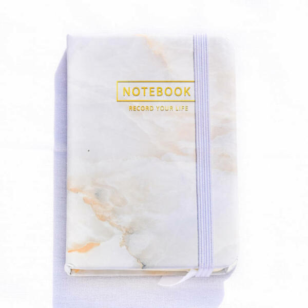 Márvány mintás, keményborítós, könyvjelzővel ellátott vonalas notesz A7-es méretben.