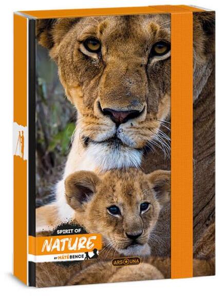 MÁTÉ BENCE különleges természetfotójával díszített A5-ös méretű füzetbox, oroszlán és kölyke mintával. A füzetbox kiváló minőségű, kemény, tartós kartonból készült. Gumipántja 7 mm vastag. Füzetek, iratok tárolására alkalmas. Méret: 22x3,5x16 cm. Válassz a teljes Ars Una - Máté Bence állatos kollekcióból >>
