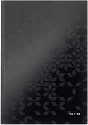 LEITZ WOW beírókönyv, A4, vonalas, fekete A német LEITZ WOW termékcsaládjának tagjai otthon, irodában és az iskolában egyaránt praktikusan, sokoldalúan használhatók. A család jellegzetességea geometrikus mintázatú, kartonból vagy félkemény műanyagból készült, strapabíró, erős borító környezetbarát, újrahasznosított vagy FSC tanúsítvánnyal rendelkező papírok f