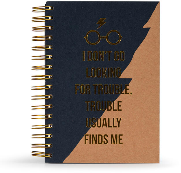 Harry Potter jegyzetfüzet - Trouble usually finds me gyűrűkötés A5-ös formátum eredeti termék vonalas Varázsigék vagy bájitalok feljegyzésére alkalmas jegyzetfüzet . Ez a jegyzetfüzet Harry Potter rajongók számára elengedhetetlen!