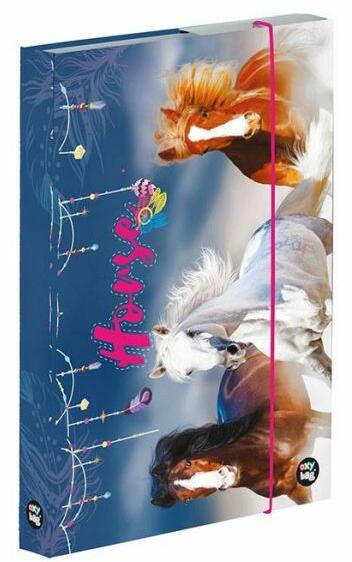 A5-ös méretű füzetbox szép vágtázó barna és fehér lovak mintával, lányoknak. Ebben tárolhatóak a füzetek, hogy ne legyenek szamárfülesek, ne sérüljenek. Mérete: 23x3x16,8 cm. Színe: kék/rózsaszín. Tartós, minőségi karton termék. Állítsd össze iskolai felszerelésed a OXY Bag Horse Blue kollekciójából >>