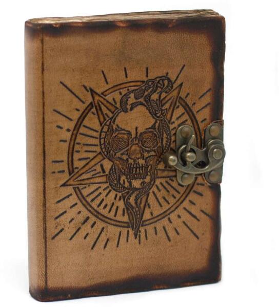 A kézi gyártású Bőr Kötésű Notesz - Pentagram és Koponya vas kapoccsal záródik. A gyönyörű dekoráció egyedivé és varázslatossá teszi ezt az eredeti darabot. Használható noteszként vagy naplóként, a művész lelkek rajzolhatnak is bele. Könnyű és praktikus, bárhova magával viheti, akár nyaralásra, üzleti útra. Mindig kéznél lehet, készen a gondolatok feljegyzés