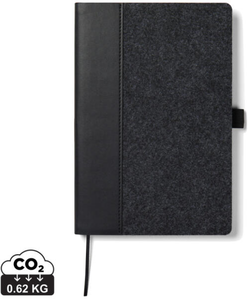 Elegánsan, újrahasznosított filcből készült, A5-ös jegyzetfüzet, mélange hatású és integrált tolltartóval. 80 lap vagy 160 oldal, 70 gsm súlyú, újrahasznosított papírral, vonalas oldalai bármilyen jegyzetelési igényhez ideálisak. A GRS (Global Recycled Standard) tanúsítvány garantálja az újrahasznosított anyagok ellátási láncát. A teljes újrahasznosított anyagtar