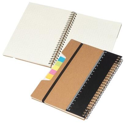 Spirál jegyzetfüzet vagy notesz120 üres oldallal, jelölő csíkokkal, vonalzóvalgumipánttal. Méret: 15,1 × 21 × 1,5 cm Emblémázását vállaljuk.