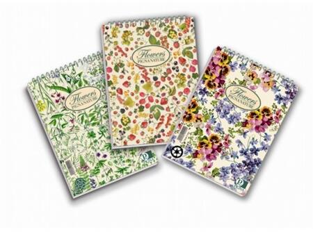 - műanyag hatású, fényes karton fedlap - újrafeldolgozott papírból készült - vegyes virágmintákkal, a minta nem választható - a dizájn év közben változhat