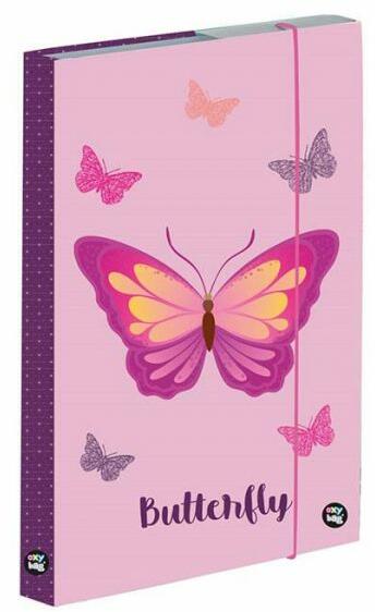 A5-ös méretű füzetbox pillangós mintával, lányoknak. Ebben tárolhatóak a füzetek, hogy ne legyenek szamárfülesek, ne sérüljenek. Mérete: 23x3x16,8 cm. Színe: rózsaszín. Tartós, minőségi karton termék. Állítsd össze iskolai felszerelésed a OXY Bag Butterfly Pink kollekciójából >>