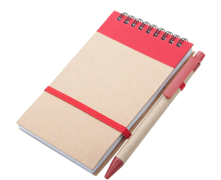 Újrahasznosított papírból készült spirál jegyzetfüzet 70 vonalas lappal, újrahasznosított karton golyóstollal. Kék tollbetéttel szállítjuk. A6 méretű.
