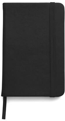 Puha PU borítású A6-os jegyzetfüzet 100 lappal, jelölőszalaggal és gumipánttal. Termékméret: 9 × 14 × 1,3 cm Szín: fekete Emblémázását vállaljuk .