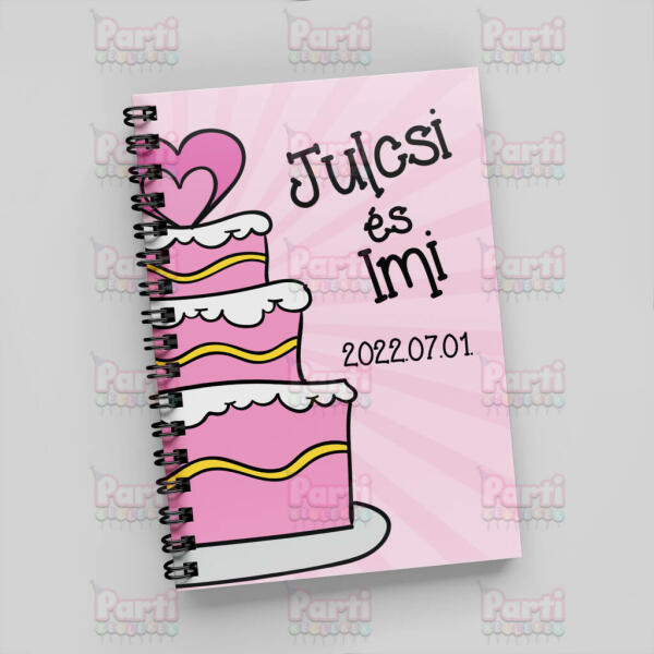 Rózsaszín, torta mintás emlékkönyv esküvőre, fekete színű fém spirállal. A könyv megrendelésekor NE FELEDJÉTEK, megadni a megjegyzésben neveteket és a dátumot! Például - Anita és Huba, 2022. július 13. Kedves leendő házasok! Előttetek áll életetek legszebb napja. Hamarosan kézen fogva, mélyen egymás szemébe nézve, örök szerelmet, hűséget és őszinteséget fogtok