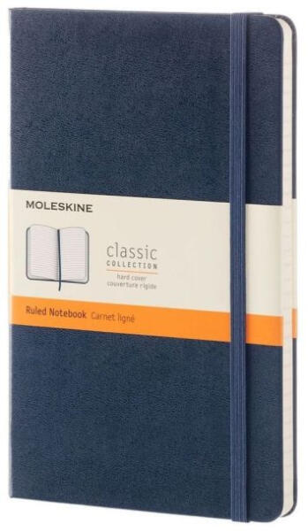 Kiváló minőségű, elegáns megjelenésű Moleskine notesz. Ez az egyszerű, klasszikus közepes méretű vonalas notesz a Moleskine legnépszerűbb termékeinek egyike. Megbízható útitárs, írásra, gondolatok és futó ötletek rögzítésére termett, lekerekített sarkú kemény fedéllel, savmentes lapokkal, könyvjelzővel, záró gumival és tágítható belső zsebbel, amiben elhely
