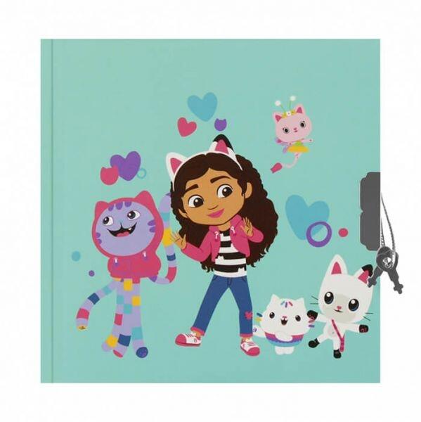 Gabby's Dollhouse - Gabi és barátai mintás emlékkönyv, kulccsal zárható. Lapja vonalas. Mérete: 13,5x13,5 cm. Kedves ajándék születésnapra barátnőnek.