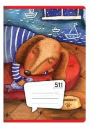 Iskolai füzet, fehér famentes papírból, A5 formátumban 10 lapos, vezetővonallal. Lineáris. Vonalzó 20 mm.