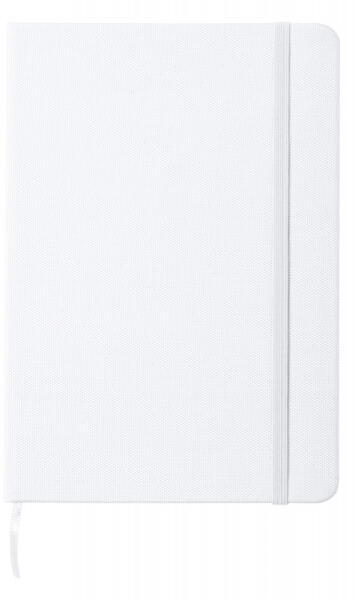 Fehér kartonpapír borítású jegyzetfüzet 80 sima lappal, színes gumipánttal zárható. A6 méretű.