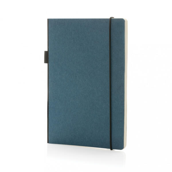 FSC® deluxe keményfedelű jegyzetfüzet FSC® tanúsítvánnyal rendelkező papírborítással, színben megegyező fekete, gumis tollhurokkal és könyvjelző szalaggal. Hátsó zsebbel jegyzetek tárolásához. 80 lap/160 oldal krémszínű, FSC®-tanúsított, vonalas papír.