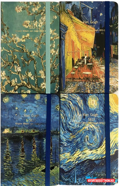 Gumis Notesz A7 - Vincent van Gogh Inspirációval Ez a kompakt A7-es gumis notesz Vincent van Gogh lenyűgöző művészetét hozza el a mindennapokba. Kiváló választás jegyzeteléshez, teendők felírásához vagy akár naplóíráshoz is. A borítót Van Gogh ikonikus festménye díszíti, amelyet tartós, kemény borító véd. A gumis záródás biztosítja, hogy a notesz mindig zárva ma