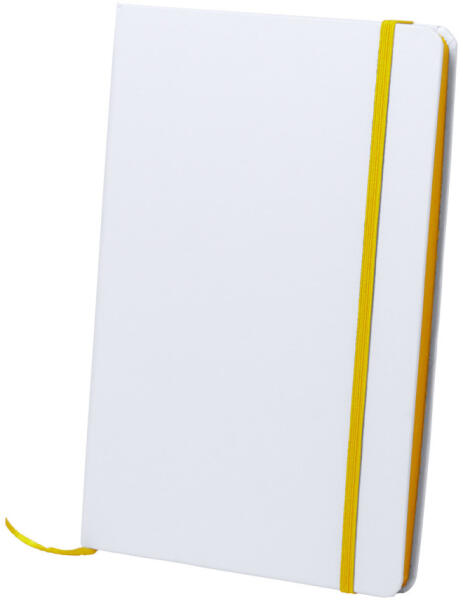 Papír borítású jegyzetfüzet 100 sima lappal, színezett lapélekkel és azonos színű könyvjelzővel és gumipánttal, A5.