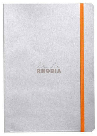 Puha fedeles, prémium minőségű napló Méret: A/5 Kivitel: 80 lapos, ponthálós Lapjai 90 g/m2 vastagságú, elefántcsontszínű vellum papírból készültek Ragasztott gerinc Dombornyomott Rhodia logóval Narancssárga gumis záródással Narancssárga könyvjelzővel Kiszélesíthet , narancssárga belső zsebekkel a napló elején és hátulján