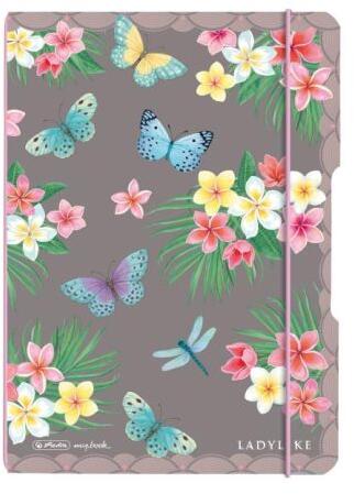 Notebook my. book flex A5, gumiszalaggal záródik, lekerekített sarkokkal. Ladylike Pillangó motívum.