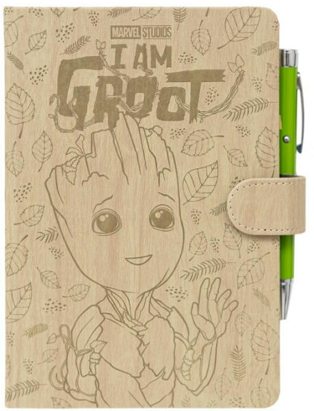 Notebook A5 - Világító tollal - Groot Notebook A5 - Világító tollal - Groot . Ez az egyedi kialakítású jegyzetfüzet olyan, mintha fából faragták volna. B orítóján a Marvel filmekből ismert Groot vidám figurája látható. A jegyzetfüzet hez tartozik egy világító toll is, Groot arcát vetíti a felületre, ha megnyomjuk az oldalán lévő gombot. A színes kis figura biztosan