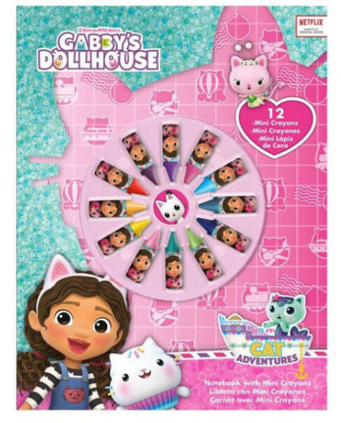 Gabby's Dollhouse, Gabi babaháza füzet + mini zsírkréta szett Méret: 21,5x28 cm Tartalma: - 1 db füzet A4 - 12 db zsírkréta Csomagolt termék, ajándéknak is kiválóan alkalmas.