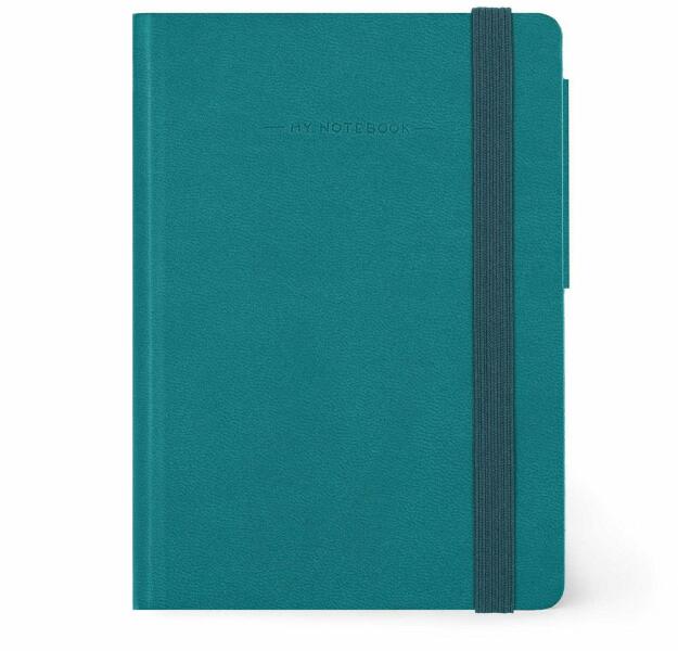 Úrahasznosított műbőr borítású jegyzetfüzet újrahasznosított papírból készült 100 sima lappal. Hozzáillő színű gumipánttal és könyvjelzővel. A6 méretű.